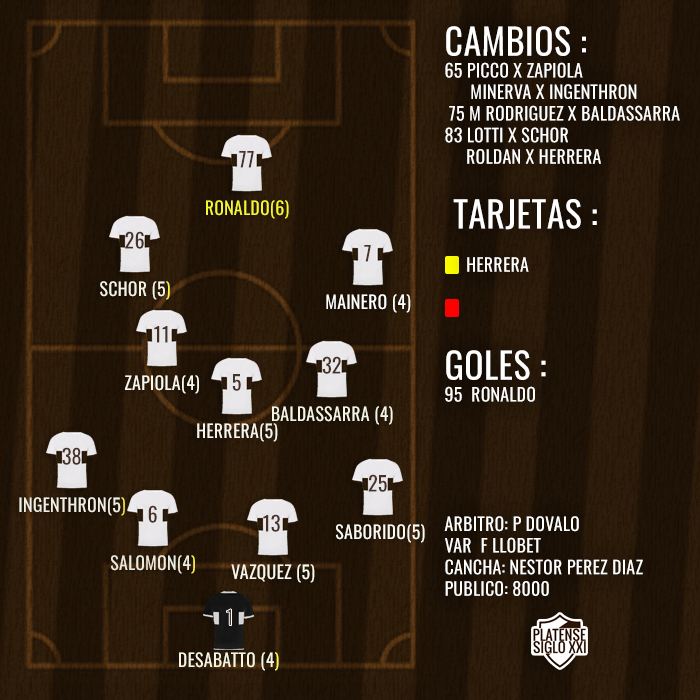 Platense, es cierto que tambien conto con varias situaciones, sobre todo al comienzo del partido cuando Ronaldo y Schor se lo perdieron por rebotes en rivales.