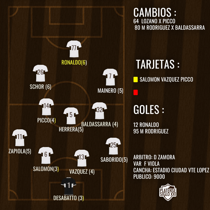 Pero cuando ya se llevaban 5 minutos de los 6 adicionados, insolitamente, Platense encuentra una contra bien manejada por Schor, apertura para Ronaldo que con un centro busco al chileno Rodriguez para que debute de una vez en la red y consiga el agonico empate que no cambia en nada el parecer hacia el DT, que tomo al ultimo campeon y en 10 partidos solo obtuvo 2 victorias, 5 empates y 3 derrotas (11/30 el 36,66 %) pero fundamentalmente arruino un estilo consolidado, empeoro a todos los protagonistas y nunca demostro sentido de pertenencia ni feeling con la gente propia, declarando pesimamente.