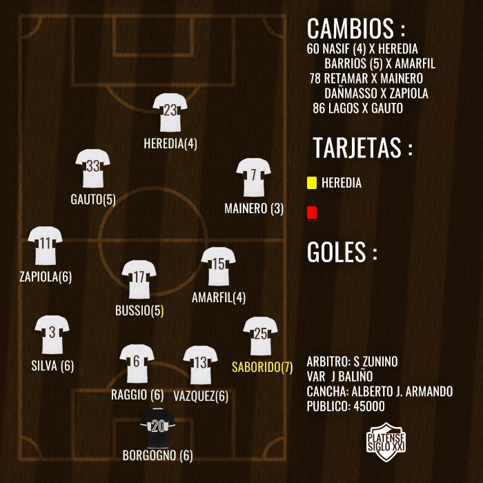 Pero luego de una primera etapa pareja donde sin embargo se conto con dos ocasiones muy propicias, como un tiro de Saborido que dio en el palo ( y salio para afuera, porque nunca se meten esas pelotas cuando son para nosotros) y otro centro interceptado claramente por el codo de Barinaga sin que el VAR decidiera llamar al Zunino arbitro para marcar el penal el equipo siguio sin apretar el acelerador.