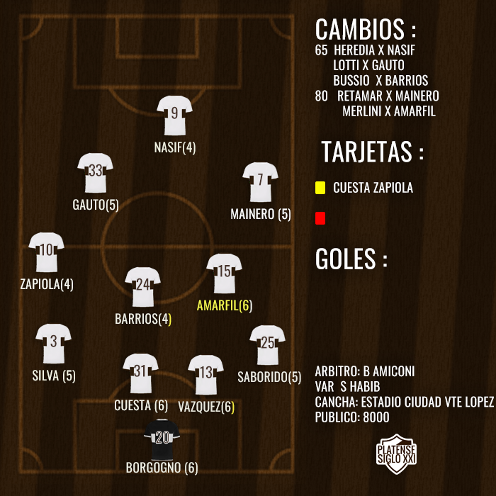 Con Vazquez empujando desde el fondo, la notoria levantada de Amarfil que empézo a interceptar todo lo que le pasaba cerca y la voluntad del resto, Platense lo empezo a inclinar e imponer algunas condiciones.